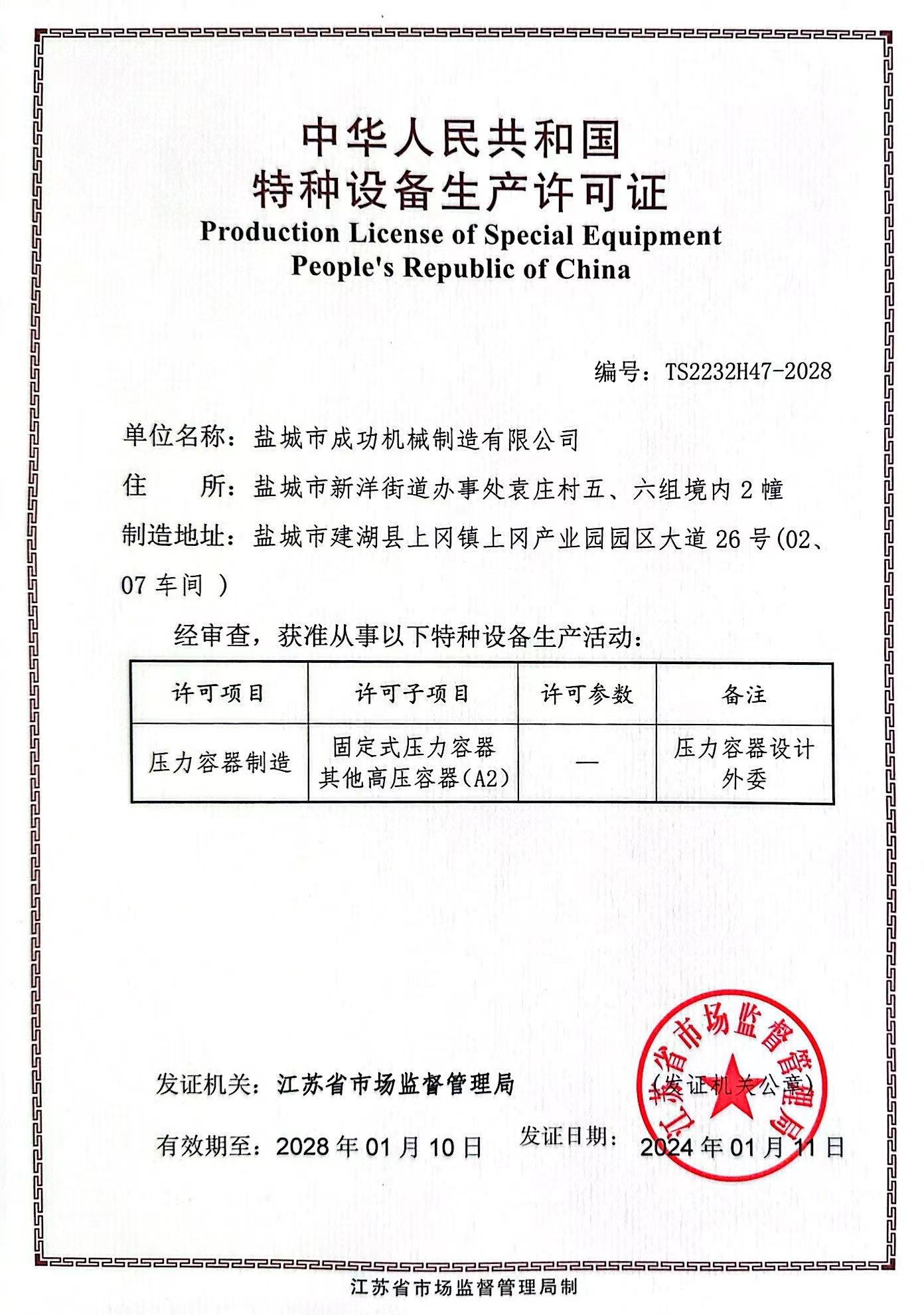 • 特種設(shè)備生產(chǎn)許可證